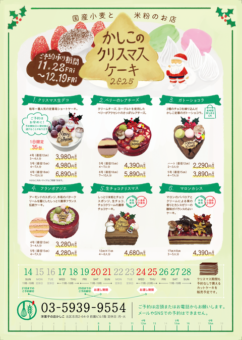 大変お待たせしました~!今年のクリスマスケーキのチラシが完成しましたので、ご案内いたします。予約は11/28(金)からです!クリスマスケーキがお···